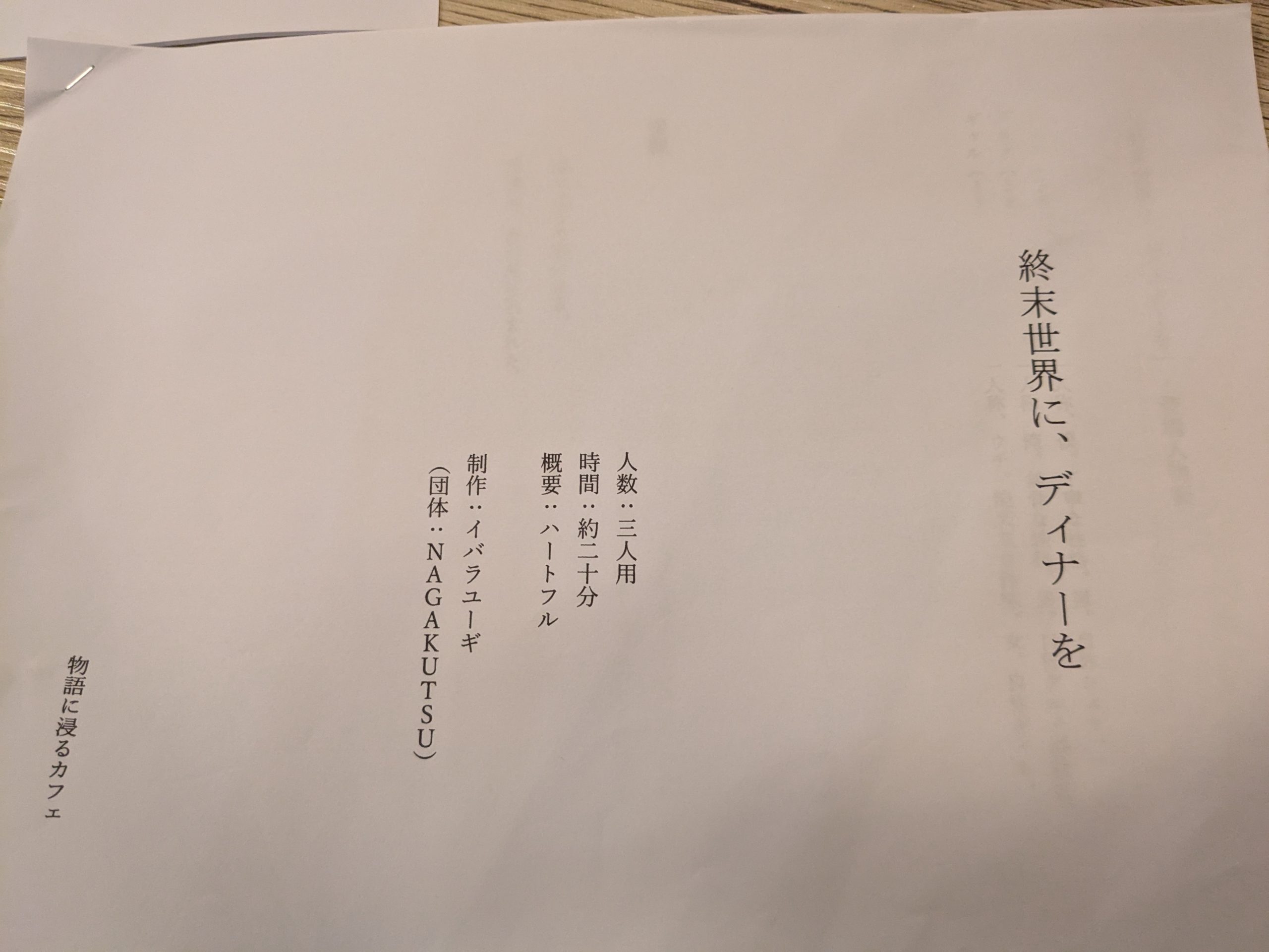 物語に浸るカフェのスタッフさんが人数調整してくださったり、台本のコンシェルをしてくれるところも含めてとてもありがたい
