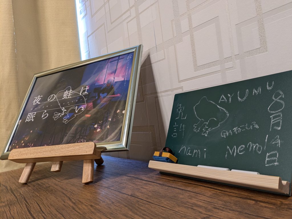 黒板に各々のプレイヤーネームを書いたり落書きしたりする