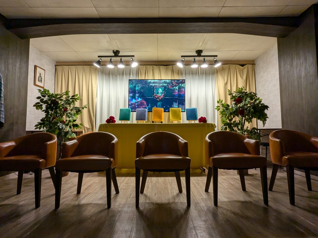 そして記事冒頭に貼り付けた部屋の写真からわかるように、特殊な椅子の配置になっています